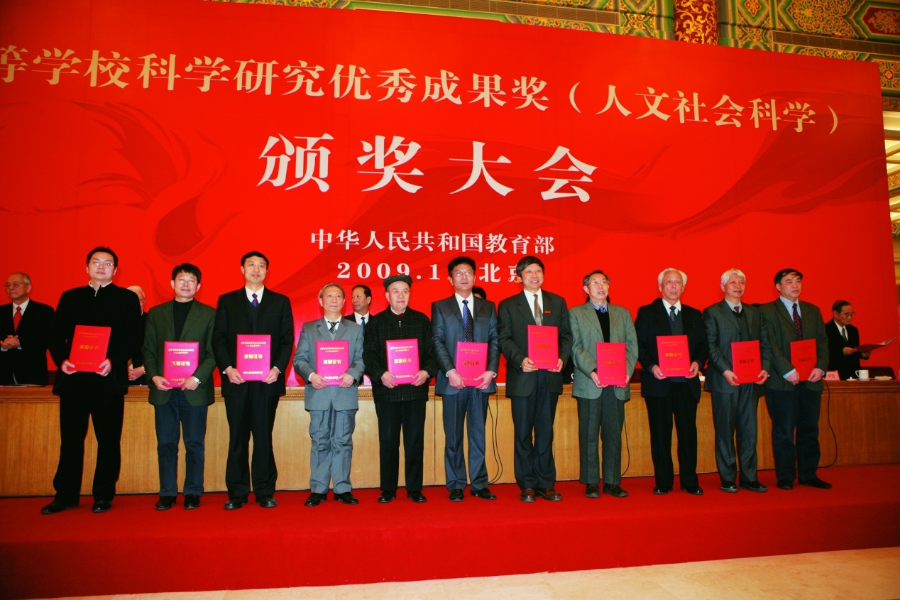 《南京大屠杀史料集》获得教育部高校科学研究优秀成果奖(人文社会科学)中国历史类一等奖拉斯维加斯游戏最新官方网站ღ✿ღ◈,张宪文(右三)代表全体编者上台领奖